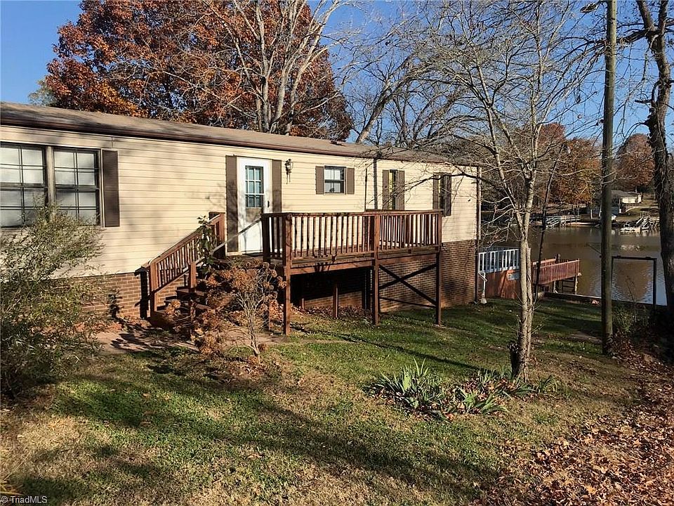 Enjoy lake living on deep water! This home on Swearing creek is move in ready. Large roof top boat house deck, plenty of storage and fantastic sunrise views. Recently installed Central HVAC. Come see this lakefront home and experience what HRL has to offer! 45 min. to GSO, 30 min to Winston Salem. W/D & Fridge do not convey.