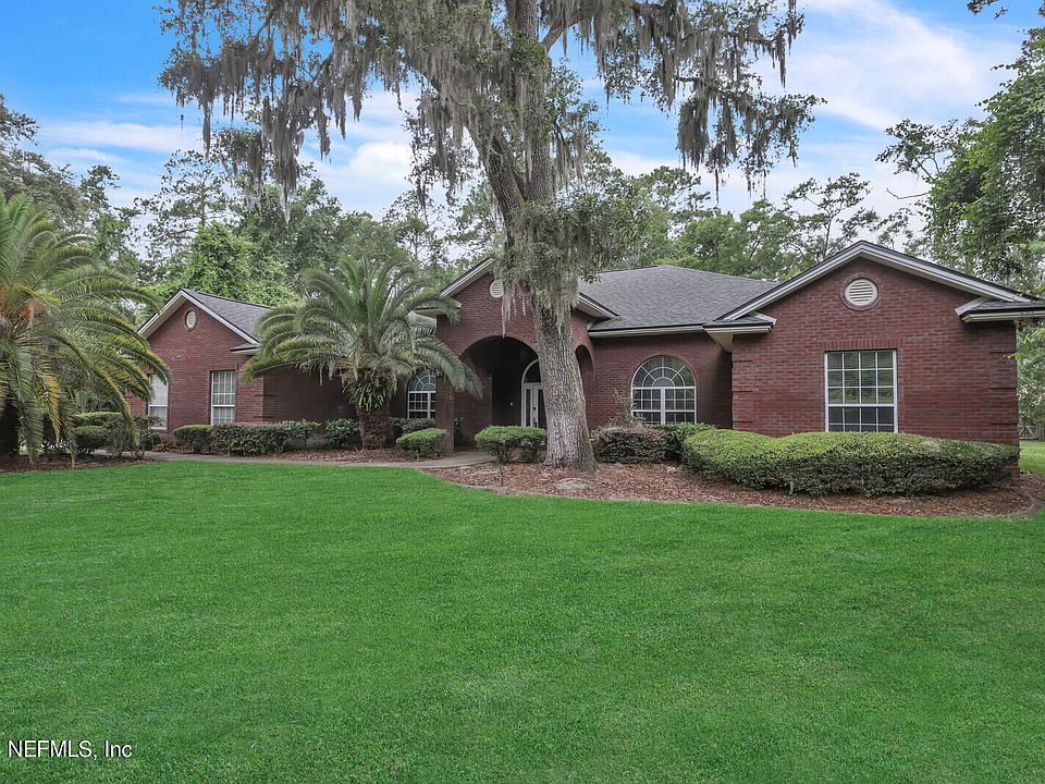 ACCEPTING BACKUP OFFERS! Personalize and customize your dream home nestled in the heart of St Johns!. This stunning property offers a perfect blend of luxury, comfort, & convenience on over 2 acres of private land with NO HOA or CDD fees, making it an ideal haven for you and your loved ones. This beautifully designed home boasts 4 bdrms with a 3 way split for privacy, 3 bathrooms & ample living space spread across 3,423 sq ft. Every corner of this residence exudes warmth & elegance, providing the ultimate in comfort & relaxation. Enjoy cool nights in your screened lanai as you overlook your private backyard oasis or use the space to build your dream pool! Stay warm in the winter while sitting in front of the fireplace in either the living room or the main bedroom. You won't believe the detached 4 car garage & living space and half bath/potential in law suite! 1047 sq feet of additional space for entertaining, hobbies or more! RV/Boat Carport offers electricity hookup