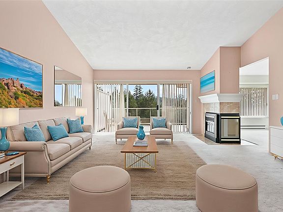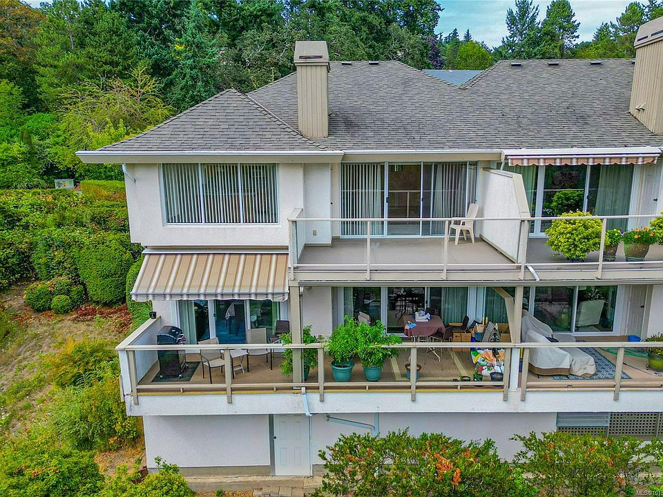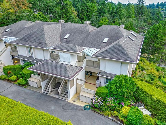 Opportunity awaits in this highly sought-after Broadmead neighbourhood! This bright and spacious top-floor end-unit townhome has an elevator from the underground parking, vaulted ceilings, a cozy fireplace, and expansive picture windows where you’ll enjoy sweeping views of evergreen trees and the Olympic Mountains. With two generous bedrooms, the primary with a spacious ensuite and a guest room with a Murphy bed. The open layout flows to the large south-facing deck, the perfect spot to soak in the sun. This is a nature lover’s paradise—the complex even has its own private gate to the paths around Rithet’s Bog. Pets are welcome (no size restriction for your pup). Unit includes 2 parking stalls and a large storage locker, plus a chance to meet your neighbours in the community garden. Enjoy shops, cafés, and dining just a short stroll away. Mt Doug’s hiking trails, golf courses, and the Rec Centre with pool and fitness facilities are also close by.