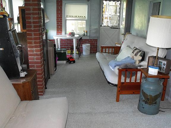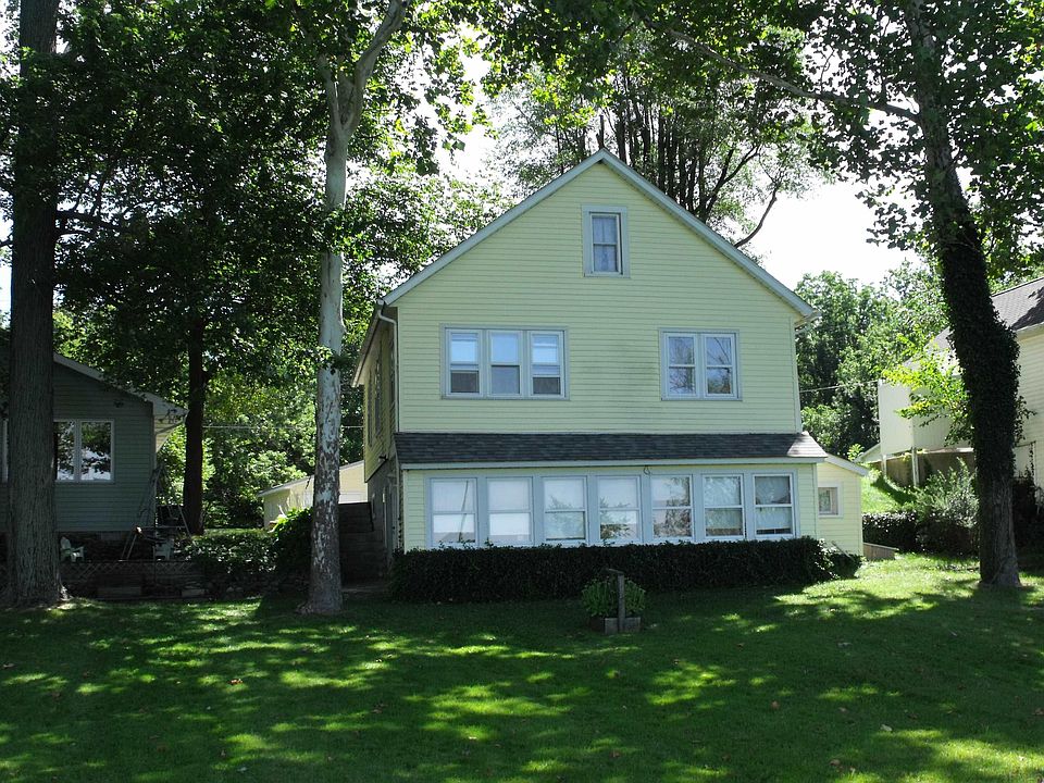 Located at the entrance to a channel with room for a dock and has great water views on this well known fishing lake. Private road with several year round owners. Survey has been ordered to clarify lines and legal description. Has second garage. Plenty of off street parking for your guests. Watch for flags showing approximate parcel corners. Walk out basement entered from outside entrance. Well shared with current owner to the north. Purchaser will need to connect electricity to the detached garages. Has home warranty on mechanical items for peace of mind.