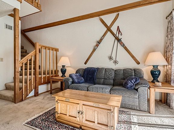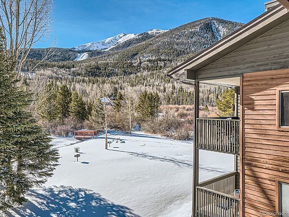This light and spacious condo located in highly sought-after Mountain Side is right near the Summit Recreation Path with the convenience of being only a short walk or bike ride to historic Main Street and the Frisco Marina on Lake Dillon. This third-floor residence features a wood burning fireplace, vaulted ceilings and incredible views of the Tenmile range and sits right near Jug Creek to add to the fun of enjoying the outdoor patio deck. Amenities at Mountain Side include indoor pool, hot tubs, tennis court, and more! Enjoy close access to skiing at Copper Mountain, and Keystone not too far away. Property is being sold furnished with the exception of wooden skis and poles mounted on living room wall. Buyer and buyer’s agent to verify all rental information. Town of Frisco has 1% transfer tax.