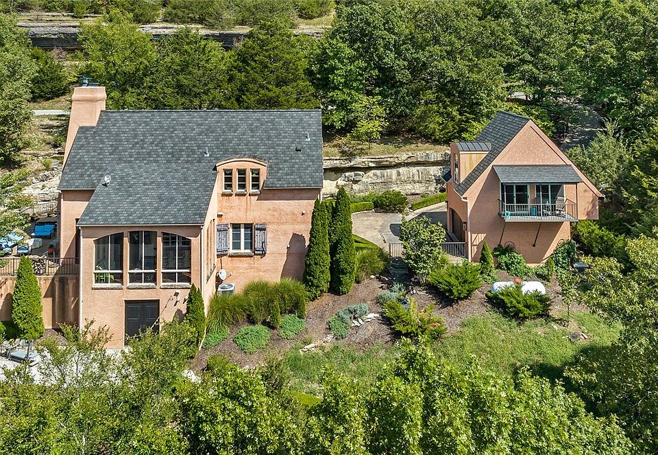 Step into this luxurious, Beaver Lake retreat, artistically crafted European design, with guest house and brand new private 3 slip boat dock and swim deck. Offering endless possibilities, this resort style waterfront living is near the dam on Beaver Lake conveniently located close to restaurants and entertainment in downtown Eureka Springs. Ideal for entertaining inside and out this the main home features 3 bedrooms and 3 bathrooms, a gourmet kitchen open to the Living and Dining room with stone fireplace leading to a screened in patio and large stone patio with wood burning fireplace and natural limestone bluff all overlooking the lake. The detached guest house is as luxurious as the main home which includes a kitchen, living room, and bedroom suite with private balcony overlooking the lake. This home boasts exceptional access to outdoor recreation and ultimate privacy, with a lush landscaped path that winds down the hillside providing a gradual decent to the shoreline that will make you feel embraced by nature.