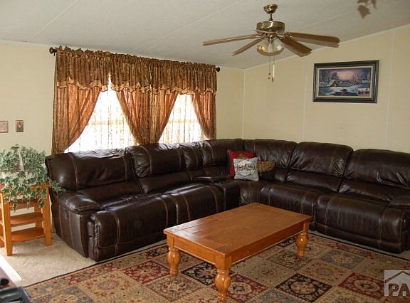 Great layout for a double-wide home permanently attached to the lot since it was new, and with a beautiful cement block exterior wall around the home. Landscaped and fenced, quiet cul-de-sac location, yet just literally minutes from town, by getting on Cellini then Purcell, almost instantly. Nice condition, popular split bedroom plan, with vaulted ceilings and ceiling fans. Lives much larger than the square footage shows. Large bathrooms, separate laundry room, which is a mudroom for the back door. Parking spaces for two vehicles off the road. Front glass storm door. Newer home and nearly new roof and some of the double pane windows. Excellent opportunity for a new loan, with all the manufactured home criteria met. Really a nice home and great potential here. Set to face the street, so really looks nice from the street as well. Original owners are selling, and have maintained the home well.