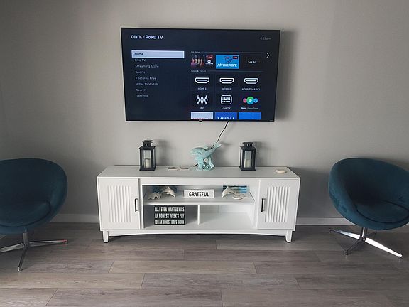 - Exterior features: 3 65' Smart Tv's, 4 Beds, Stone, Walk In Closet