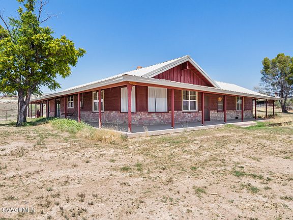 Gorgeous unobstructed mountain views from this hill top ranch style home that sits on over 3 acres. In the evening sit on the front porch & soak in the unparalleled Arizona sunsets. This home boasts uniqueness & character from the inside out. Cozy up next to the custom desert rock fireplace or step out back to the open courtyard to entertain, cook, and make memories. The baker/cook's kitchen is not only equipped with a double oven, custom cabinets, but open & spacious for hosting those family gatherings. Get creative with your interior design to complete the unfinished detached guest quarters. Let's not forget to mention this property also offers 14 covered horse stalls and perimeter fenced so feel free to let your farm animals & chickens free range. A MUST SEE, schedule your tour now.