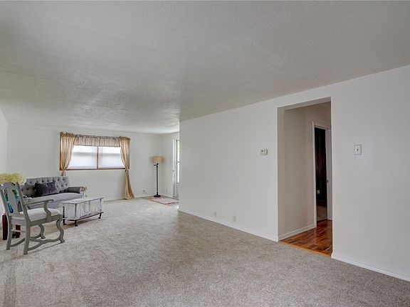 Move in ready home features huge living room with plenty of space for a formal dining area or your favorite hobby! This house has great curb appeal, tons of parking and even a covered porch to enjoy the breeze. Or relax in the central air inside, where it is freshly painted and has new carpeting through the living room and master bedroom. The rooms are large and inviting, including the eat-in kitchen. Its ready for your touches to take it from house to home! This house is on an unfinished basement, replaced windows and a detached garage in the back. Water heater replaced in 2020. Come take a look!