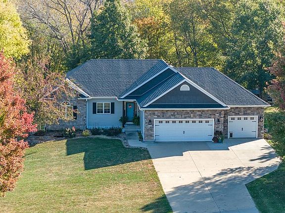 This stunning property offers the feel of a vacation getaway, without ever leaving home! Nestled on over an acre of land, complete with wooded views and a cozy firepit, it's the perfect place to relax, entertain, and make memories. The extra-deep garage provides ample storage for all your toys and gear, and there's even a bonus shed.Inside, the layout is thoughtfully designed for comfort and functionality. Enter through the garage and you're greeted by a laundry area and convenient half bath just off the kitchen. The kitchen itself features a built-in desk space, counter seating, and a flexible dining area, table of 4 or table for 10! Sliding doors lead to a spacious deck with a gazebo, where you can soak in the stunning backyard views. Just off the kitchen, the family room flows seamlessly into two bedrooms, a full bath, and the spacious primary suite. Downstairs, the finished lower level is an entertainers paradise, featuring a bar area, family room, billiards space, 2 addl bedrooms, full bath, and 2 storage areas. Welcome home, stay awhile!