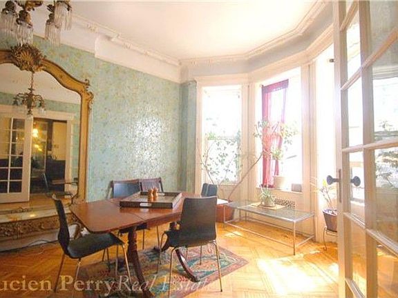This magnificent turn-of-the-century, 4,000 square foot Limestone townhouse was designed by famed architect Axel Hedman and is located on the best block in landmarked Crown Heights. It is a short walk to the shops and restaurants on Franklin Ave. Across the street from the Brooklyn Children s Museum and Brower Park, this museum- quality townhouse on the stretch formerly known as Doctor s Row, maintains almost all of its original detail. A single family home that has been converted to a legal two family with a mother/daughter layout, it could easily be converted back to its original layout. There are beautiful hand inlaid hardwood floors, mahogany wainscoting and surfaces throughout. Original hand-crafted moldings and medallions adorn the ceilings throughout the house. The parlor level has 12 ceilings, a front parlor and entry foyer with two grand mirrors, a library with stained glass window and built in bookshelves, pocket doors and wood beamed ceilings. Leading to the upper floors is an impressive, mahogany staircase. The extra-large upstairs bedrooms contain decorative fireplaces with mantles, and walk-in closets. Two of the six bedrooms have original shutters on the windows facing the front of the house. The second floor holds the master bedroom with a corridor connecting it to a second bedroom that is lined with wood and mirrored closets and marble sink. The top floor has its own kitchen The maid s/au pair s chamber has an additional, convenient back staircase from the maid s room leading to the lower levels. The bathrooms on the upper floors have original wall tiles and large claw foot tubs. The 18 x 70 ft. House is located on an unheard of 150 ft lot and has both a south-facing front yard with porch and a 50 ft. Deep backyard. The roof has recently been replaced and the mechanicals are in good condition. The property taxes are very low at under $4000 per year.