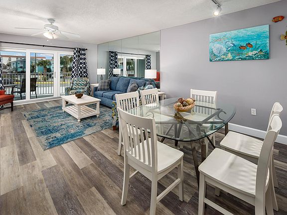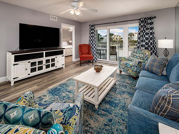 This condo is available to rent monthly between 9/1/25 and 3/31/26. Exact dates are negotiable. Located on Okaloosa Island on the south side of Santa Rosa Blvd tucked away from the busy attractions yet close enough to enjoy them. This property is a 7-story building with 90 units and plenty of amenities to enjoy. This may be the only beachfront building with private boardwalk beach access and an indoor/outdoor pool, offering year-round water enjoyment. A fitness center is just downstairs.