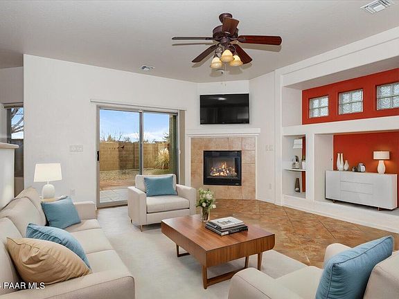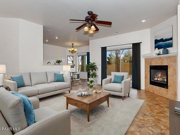 This perfect one-level, nicely-upgraded home has three bedrooms & two baths. The welcoming, open great room features tile floors, a corner gas fireplace and a spacious entertainment niche. The kitchen has gorgeous granite countertops & backsplash, and wood flooring. There are two pantry areas, a laundry closet, and a folding counter with storage. Enjoy the wonderful dining area with bay windows overlooking the sun-filled, private backyard, mature shade trees, tile-covered patio with flagstone and trex areas. The generous master bath features travertine tile, dual sinks, granite counters, oil-rubbed bronze fixtures, and a walk-in closet. There are sunscreens and an alarm system for an added bonus! 2023 HVAC! This move-in ready gem is a must-see and ready for you to call it home!