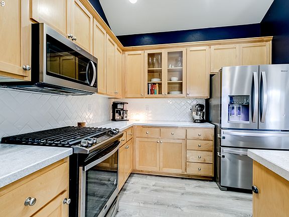 - Appliances: Dishwasher, Built-in Microwave, Garbage Disposal, Stainless Steel Appliance(s), Free-Standing Range, Free-Standing Refrigerator, Island, Tile, Gas Appliances