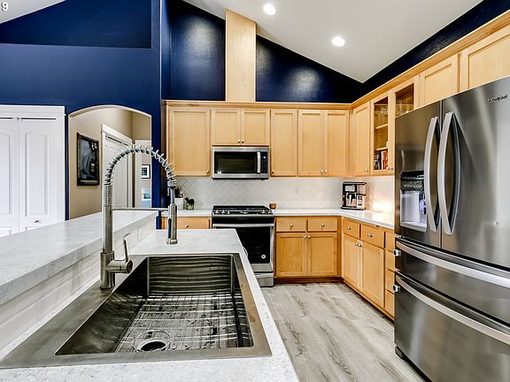Perfect family home on quiet cul-de-sac. Bruce Weichart construction featuring vaulted ceilings, open layout, & excellent craftsmanship. One-level w/3 beds + den/office. Stylish kitchen w/SS appliances & island, open to dining & fam rm w/cozy gas FP. Master retreat w/walk-in closet & private bath. Fully-fenced level yard w/tidy landscape, dog run, & patio w/gas hookup-perfect for BBQ. Friendly community w/nearby park & easy I-5 access.