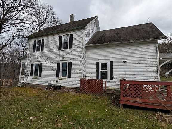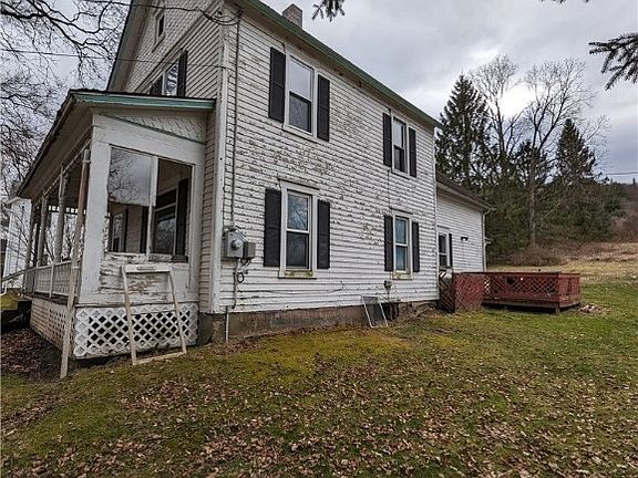Turn of the Century Traditional home with great potential. This large well built house boasts unique elements from the late 1800s. Beautiful stained glass window in the living room, unique built in in the dining room, covered wrap around porch, large living room, dining room, and master bedroom. Some updates have been started new boiler installed several years ago many replacement windows have been installed as well. Some recessed lighting has been placed in the living room. The property is being sold AS IS due to a known defect with the septic system and that will likely have to be replaced. The bathroom will also need to be renovated. Large almost 2 acre lot in a small town, this house has "good bones" and will make a beautiful home with some work.