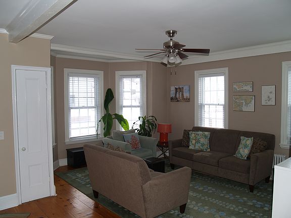 Single Family Home for sale by owner in Portsmouth, NH 03801. Move-in ready home situated in the center of the West End with recent updates throughout. Open floor plan is functional and great for entertaining. Updated kitchen features new stainless, energy efficient appliances including a natural gas oven-range, a center island as well as food and storage pantries. A convenient downstairs bath includes laundry with high efficiency washer and dryer. Charming New Englander details include high ceilings and full bay windows in living room and master bedroom. Upstairs features a large master bedroom, 2 additional bedrooms, fresh no-VOC paint throughout and a newly renovated bathroom with designer shower, dual flush toilet and storage. The fully fenced in yard with perennial gardens and sprinkler system, large deck, separate patio, storage shed and driveway complete this home. Walking distance to all that the West End and Market Square have to offer, including Cater Park playground, Goodwin Park, Han