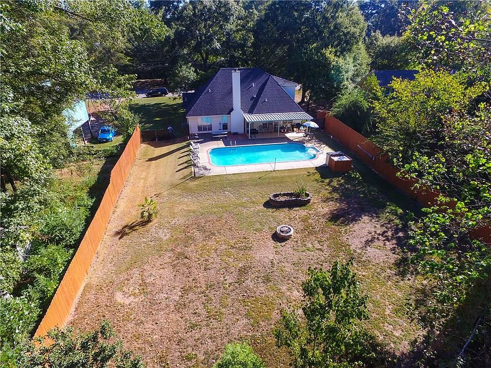 Cannonball! If lying out in the sun, too close to this pool, you could get wet! If it rains, you can sit out underneath the covered rear porch & watch the rain drops hit the pool & patio. When walking inside, don't forget to dry your feet off as you walk across the hardwood floors in the main living areas over to the tile in the kitchen & bathrooms. Dance around the open kitchen/dining area.On a cold night, warm-up by the woodburning fireplace. No need to shop for appliances, they're all included; stainless in the kitchen. NO HOA fees! NEW ROOF in 2015, NEW HVAC on the left side in 2015, NEW HVAC on the right side in 2016, NEW WATER HEATER in 2016. NEW GRANITE COUNTERS, tile floors, and paint in 2016. New carpeted stairs & upstairs hall/bedrooms in 2015.