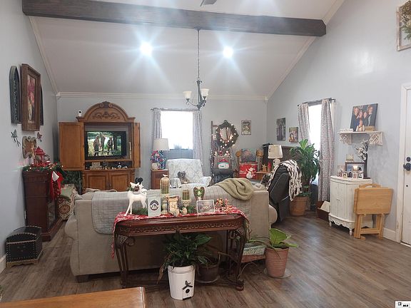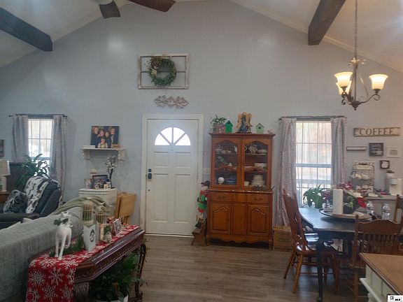 Country living, high ceilings and so modern, c H/A, open floor plan with beautiful stained beams, deck outside, one bedroom, one bath but could have more bedrooms by adding a wall or two. Carport plus 8 x 24 front porch qualifies for 100% financing.