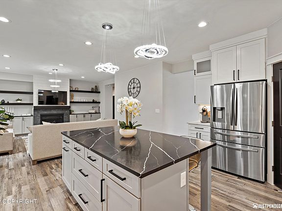 This well-lit gorgeous home will not disappoint! Amazing neighborhood, great commute location, open & functional floor plan! Quartz countertops, LVP floors, W/I pantry, gas fireplace w/built-ins & stone surround. Large master suite with soaker tub, tiled walk-in shower & guest suite on the main level. All appliances + TV stay. 3-car garage, paved RV pad, OnDemand water heater. LL related to seller