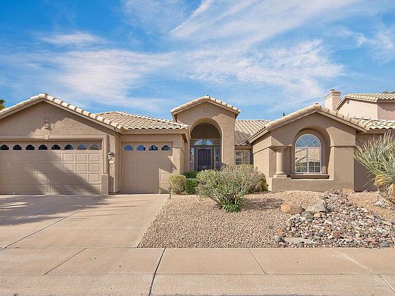 Outstanding home located in Scottsdale has everything you have been looking for. Providing 3 car garage and desert front landscaping. Remarkable interior is complete with 3 bed, 3 bath, living/dining area with amazing pool views, luxurious light fixtures, neutral paint, wood-burning fireplace, double-door den, and wet-bar. Dreamy eat-in kitchen includes upgraded stainless steel appliances, recessed/track lighting, cabinetry with crown molding, and centered island with cook-top & breakfast bar. Large double-door master suite has private exit, walk-in closet, and elegant full bath with separate tub, step-in shower, and dual sinks. Amazing backyard with covered patio, storage shed, grassy area, citrus trees, and sparkling blue pool is ready to enjoy. Great location off of the 101 and Cactus!