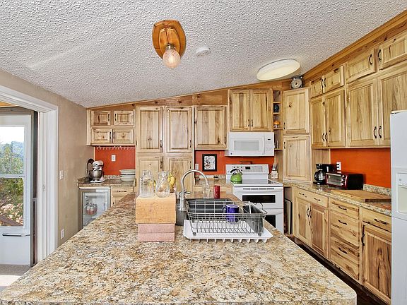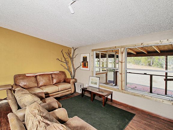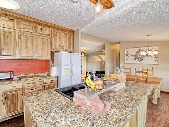 3 bed, 2 bath ranch style home with a detached 2 car garage/shop Main house and all out buildings having metal roofing. Kitchen has been beautifully remodeled in 2015. Sitting high up on the rock the views are amazing in every direction. A little piece of heaven. Sitting on 10 plus acres. Bordering BLM. 4 sheds/shops will stay. 2 having electric (100 amp service) and heat and A/C. One with also has 220 power. RV parking and RV dump. Green house with well water to it with raised gardens and drip system to them. This double wide is purged and tied down with hurricane straps sitting on block foundation. Well in place that puts out about 7 gallons per minute. Two front rooms are not included in SF listed. Both are heated an finished. One houses a hot tub that will also be included in the sale. There is no gas or propane to property everything is ran off of electricity.