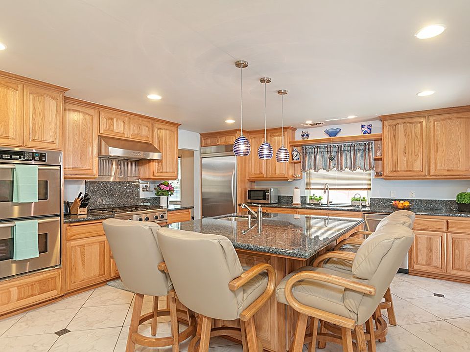 PRICE RANGE FROM $598K~ $629K CUSTOM GOURMET KITCHEN W/GRANITE COUNTER TOPS & ENORMOUS ISLAND W/SINK & WINE FRIDGE. THERMADOR 6 GAS STOVE BURNER W/POT FILLER, KITCHEN-AID, DOUBLE OVEN, DISHWASHER & CUSTOM HICKORY CABINETS W/LARGE PANTRY & TILE FLOORINGS. PERFECT FOR A BAKER & CHEF! SPACIOUS LIVING ROOM W/REAL HARDWOOD FLOORINGS & DUAL PANE WINDOWS. GIANT FAMILY ROOM W/ METAL GAS FIREPLACE & WET BAR. LARGE MASTER SUITE & DESIGNER PAINT THROUGHOUT! DUAL ZONE HEATING & A/C. PRIVATE BACKYARD W/FISH POND!