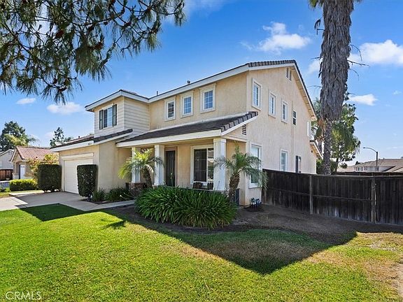 Welcome Home! Upon opening the front door you will be greeted with dramatic high ceilings in this light filled Formal Living Room. The windows in this space shine upon an inset which is the perfect location to showcase your favorite artwork. Venture past the living room into the heart of the home. The Supersized Family Room has a gas fireplace and is open to the kitchen. The kitchen has been remodeled with beautifully finished maple color cabinets and granite counters. Certainly a chef's delight!. The kitchen island offers a convenient storage solution and easy access doors on both sides as well as seating for two. The kitchen's design style is sure to please as it easily fits a table. New carpet was recently installed in the home and the downstairs common areas offer easy to maintain wood laminate flooring and newer A/C will keep you cool this summer! The laundry room is conveniently located upstairs and has plenty of storage space and a convenient countertop. The primary bedroom features a private en-suite bathroom with a barn door style closure, two generous walk-in closets, dual sinks and a soaking tub. Several of the secondary bedrooms have mini walk in closets. A must see! Step outside to your private backyard. It is well planned with a huge covered patio, gas fire pit, raised planter gardens, and a smaller patio area with 220 and 110 outlets which could be used for a spa. Certainly an ideal place for gathering or simply unwinding after a long day. The Orangecrest area of Riverside offers close proximity to freeways, shopping and various restaurants. This home is very close to parks, a dog park, athletic fields, community center and library and both private and public schools. This neighborhood is highly desirable with low taxes and no HOA.