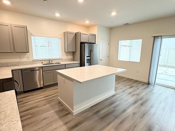The home includes stainless steel appliances: a refrigerator, microwave, and range. Need to provide your own washer and dryer. Home comes with upgrades, including newer laminate flooring, quartz countertops, and newly installed blinds. The backyard offers a low-maintenance concrete patio, tenants are responsible for yard care. There is no HOA.