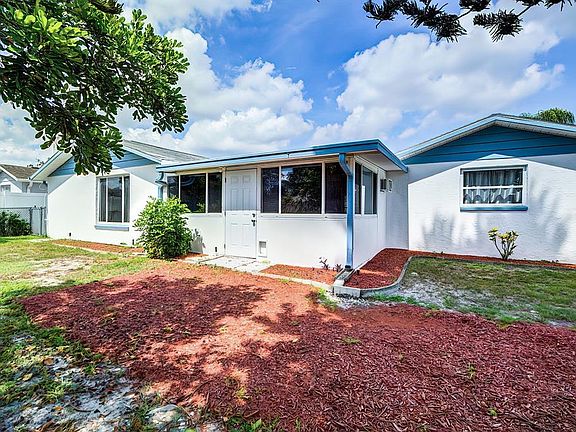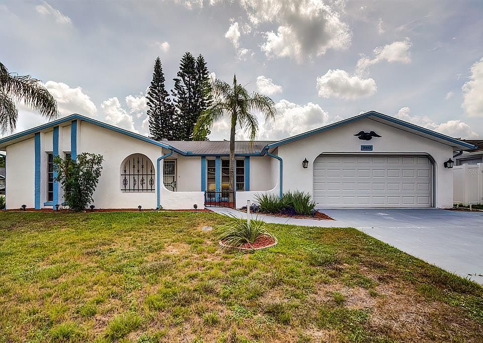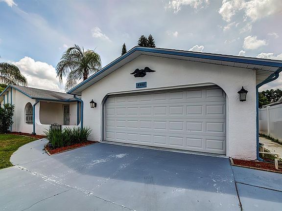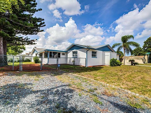 Beautiful home on an oversized CORNER LOT in the city of Port Richey. As soon as you walk into this lovely home you will immediately see the true pride of ownership. Beautiful laminate floors that open up to a very spacious open floorplan with abundant natural light. The kitchen has a conveniently located breakfast bar that opens up to a spacious dining room and a separate sitting area with a classic brick wood burning fireplace. The volume ceilings create an open spacious feel to the home. Large enclosed back porch offers space for outdoor style dining and is ideal for entertaining or family gatherings. UPDATES Include: BRAND NEW AC SYSTEM, NEW Carpet, NEW Blinds and FRESH paint inside and out. There is a fenced backyard with a rear gate that provides ADDITIONAL PARKING for trailers, boats, jet skis or other toys- perfect for contractors or outdoor enthusiasts. The garage has a wall of custom storage cabinets for storing all your garden, outdoor and fishing supplies. This home has no HOA or CDDS. Located close to restaurants, shopping, beaches, entertainment and other amenities. One or more photo(s) has been virtually staged.