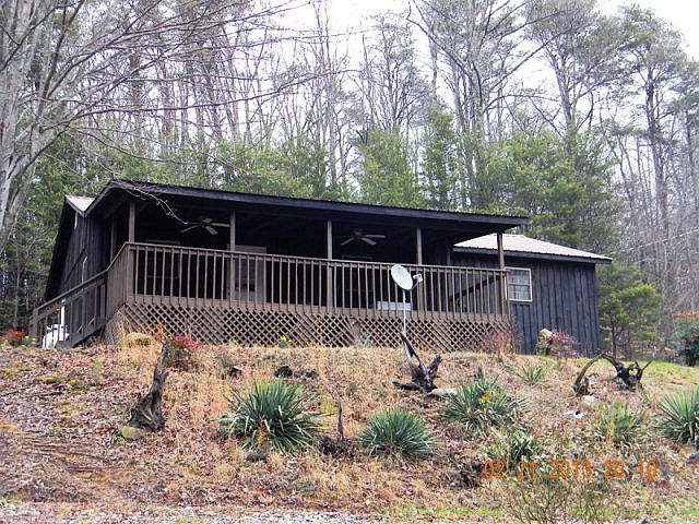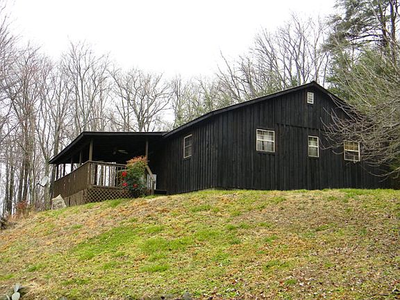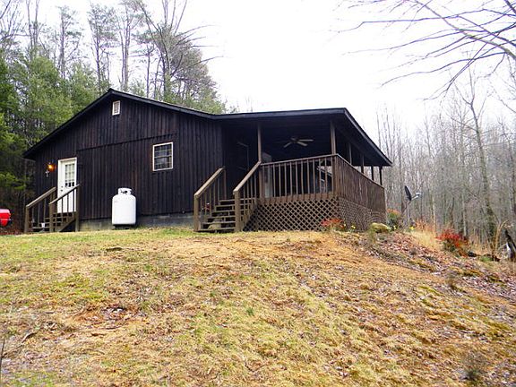 Rustic 3 bedroom 2 bath up on the mountain. Situated on 13 wooded acres offering privacy, hiking trails, and a spring/creek. Home has a nice big front porch to make the most of nature. Large outbuildings & dog kennels remain. Step inside and you'll appreciate the open floor plan and surprisingly large bedrooms. Gas stove in living room remains- provides a great back-up heat source.