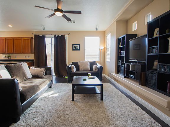 Spectacular 2 Story home near Mtns Edge, Large open Floor plan w/Beautiful Dark laminate hardwood flooring throughout, Built-in Surround Sound, Granite Kitchen w/Island. Loft Upstairs w/ built-in cabinets, X-LARGE Master Bedroom w/ Sitting room, Master bath has His and Her Vanities, Separate tub, and shower.