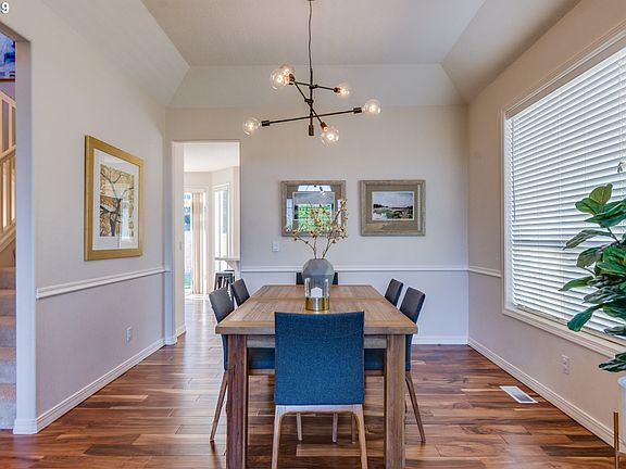 Lots of natural light, vaulted ceilings and gorgeous hardwood floors make this home comfortable and welcoming. Updated open floorplan, light and bright kitchen, eating nook w/ slider to fully fenced backyard and patio for entertaining. Vaulted master suite features walk-in closet, master bath with double sinks and soaking tub. Additional 3 generous sized bedrooms upstairs. Nearby Tualatin schools, parks and shopping