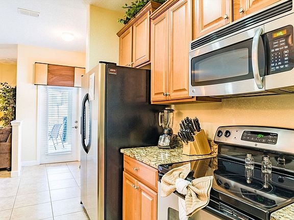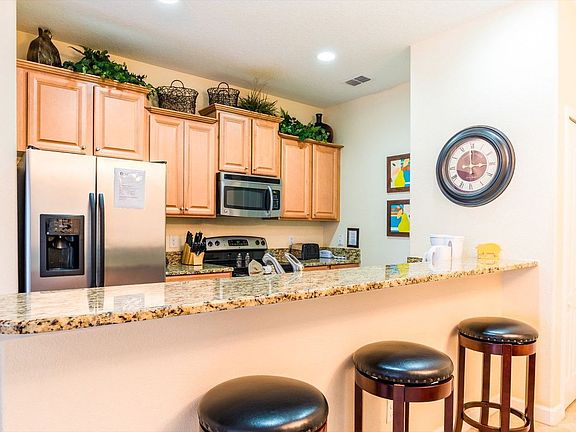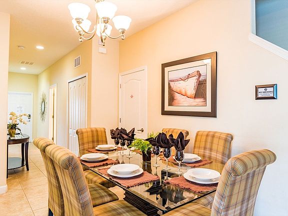 Welcome to this inviting 5-bedroom, 4-bathroom townhome located in the gated community of Paradise Palms Resort. This private vacation home, complete with a north-facing splash pool, offers a perfect retreat for families looking to explore Central Florida. Situated just 5 miles from Disney World, the townhome features a fully equipped kitchen with seating for 6 at the dining table and additional seating for 4 at the kitchen counter. The townhome is thoughtfully designed to accommodate up to 10 guests comfortably. The first floor includes a bedroom with a queen bed and another with two twin beds. On the second floor, you'll find a master suite with a king bed and attached bathroom, another bedroom with two twin beds, and a second master suite with a king bed and attached bathroom. The open-plan living area is perfect for family gatherings, and the fully equipped kitchen ensures you have everything you need for meal preparation. For an additional charge of $20 per day plus tax, you can heat the private splash pool. The resort allows a maximum of 3 cars per townhome, with designated numbered parking spaces available for each unit. Additional rental items such as BBQs, cribs, pack-n-plays, strollers, and high chairs are available for rent. Paradise Palms Resort offers a wealth of amenities, including a massive 5,000 sq. ft. pool, a luxurious hot tub, an exciting water slide, a tiki bar, a 50-seat movie theater, a state-of-the-art fitness center, a sundry shop, a game room, an internet lounge, basketball courts, sand volleyball courts, and lighted tennis courts. The resort's prime location places you just 5 miles from Walt Disney World, 19 miles from Universal Studios, and 15 miles from SeaWorld. Convenient shopping and dining options are also nearby, with Publix Supermarket 2 miles away and Walmart 3 miles away. This townhome is smoke-free and pet-free for your comfort. Enjoy the convenience of complimentary WiFi and free on-site parking. Towels and linens are provided, and a starter welcome packet is supplied with essential items like toilet paper, soap, and laundry detergent. Guests are responsible for replenishing supplies beyond the starter pack. Check-in is streamlined with online email check-in, and 24/7 on-call maintenance is available for any needs during your stay.