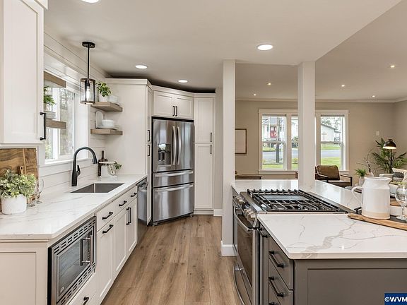 Beautifully updated Farmhouse on just under 15 acres w/ 40x60 shop. LVT floor, quartz countertops, custom cabinets w/ soft close, heated tile floors in primary bath, gorgeous walk in shower w/ dual shower heads. Family room could easily be bedroom for a 4bd/2.5 bath. Stunning covered outdoor living space w/ wood burning fireplace & amazing sunsets. Shop has concrete floor, 220 power. Covered RV parking, multiple outbuildings for animals w/ fenced pastures. Seller is licensed Real estate agent.