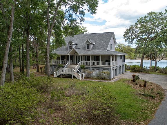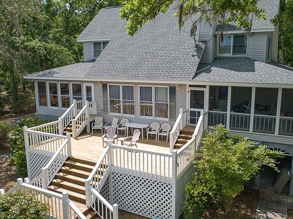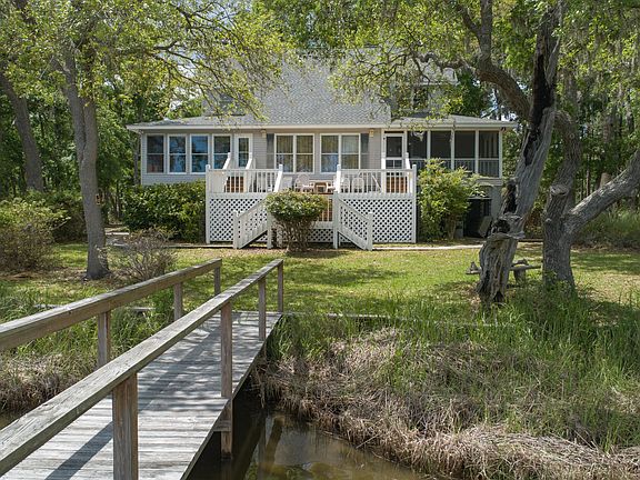 BEAUTIFUL CUSTOM HOME on LAKE (the only home w/ a dock allowed). in THE NECK. Spacious floor plan w/hardwood floors in public areas, large Corian kitchen, Gas FP, Sunroom-Dining Room, deluxe Master Suite, Screen porch, & large dropped sundeck. Custom features abound, nicely landscaped; magnificent Live Oaks, offered furnished w/only a few exceptions. Excellent saltwater fishing from private dock. Convenient to Live Oak Boat Landing, the beach, & shopping. GRACIOUS ISLAND LIVING!!
