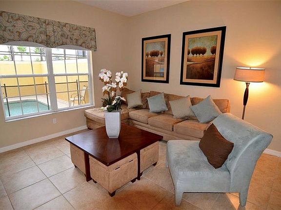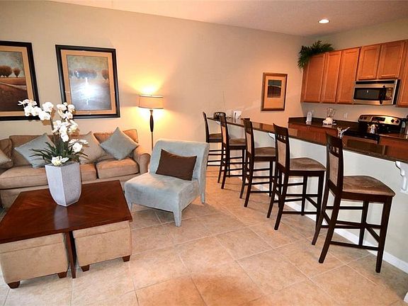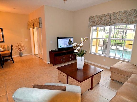 This piece of Paradise could be yours! Amazing 4 bedroom 3 bathroom professional fully furnished luxury town home with heated pool. No expense has been spared to make this home a fine example of how good a vacation home can be and it is even one of the closest to the clubhouse. Granite countertops in the Kitchen and master bathrooms, Maple Wood Cabinets, 18" tile throughout the first floor and stainless steel appliances. This home is ideal for a luxury vacation home or investment rental property. Paradise Palms is one of the most popular rental locations in the Disney Orlando area. Only a short stroll from the home to world class pool and lots of amenities! featuring a Tiki Bar & Grill, waterfall resort style pool with a grotto/spa and a pool slide. A separate pool, movie theater, game room, internet lounge, basketball court, tennis court, state-of-the-art fitness center & sauna, market, deli, beach volleyball and more. HOA fee includes resort amenities & staff, cable, internet, phone, exterior care and trash removal. Paradise Palms Resort is zoned for short term rental, has a 24 hour manned security gated entrance and is just 10 minutes from Disney! This is a fantastic vacation home in one of Orlando's most popular resorts, do not miss out on this prime opportunity! Existing rentals can convey if you choose to stay with the current management company.