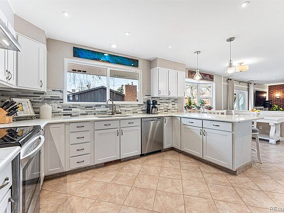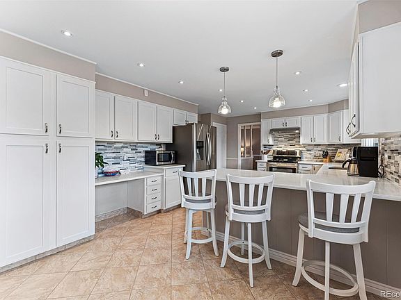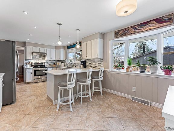 Welcome to this stunning and spacious 2-story home with inviting curb appeal on a corner lot and tucked in a cul-de-sac - offering some amazing mountain views! With an open and bright layout and finished basement, there is plenty of room for everyone. The upper level features 4 bedrooms, including a gracious primary suite, providing comfort and luxury living. The beautiful hickory engineered flooring throughout the main and upper levels adds a touch of elegance to the home. The main floor offers a versatile office space that can also be used as a 6th bedroom. Recent updates in the eat-in kitchen include quartz counters, stainless appliances, and new fixtures, creating a modern and inviting space. Convenience is provided with a main-floor laundry room. This home also features a welcoming living room, designated dining room adjacent to the kitchen, and a family room with a cozy wood-burning fireplace, perfect for gatherings and relaxation. The finished basement adds bonus living space, with a conforming bedroom, additional family room, 3/4 bath, and flex space that can be used as a home office or home gym. Great storage can be found off the utility room, ensuring everything has its place. The gorgeous fenced yard is adorned with a sizable maple tree and storage shed, providing both beauty and functionality. Parking is a breeze with the 2-car attached garage. All conveniently located within the desirable Westgate neighborhood, situated close to trails and open space—minutes from Red Rocks, local shops and dining.