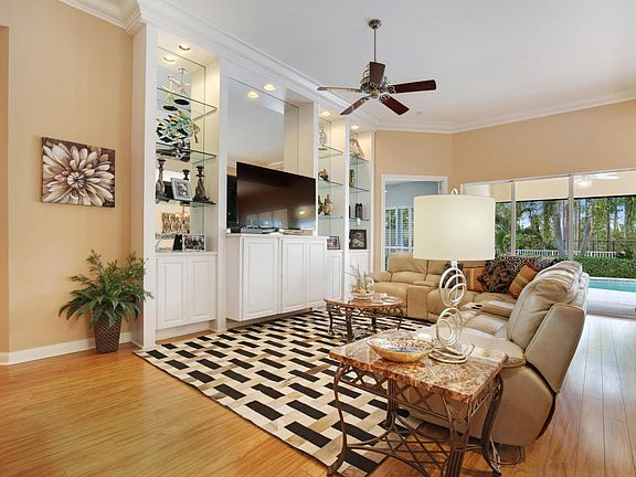 Just bring your clothes, home is being sold ''Turnkey'' fully furnished, this beautiful home features wood engineered floors,granite,stone shower,with his/hers,bathrooms,crownmolding,newer appliances,electric rolldown screen for patio,and a gorgeous heated pool.the 4th bedroom is set up as an office off the kitchen.Transfer of sale requires 2month HOA contribution.