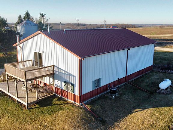 If you've been looking for the perfect retreat in Jo Daviess County, look no further! 39.54 +/- acres of beautiful mixed use farm ground and timber with an immaculate pole barn offering both living space and a large shop space. The living space features a full bathroom and bedroom on each floor, a full kitchen with granite countertops and full laundry. In addition, an open floorplan off the kitchen makes for a nice living room and a large upstairs loft offers a nice space for an office or additional entertaining space or sleeping quarters. The shop is approximately 42 X 41 with a 12 ft overhead door, concrete floor with drain and water. If that is not enough, you will find a large walk-in cooler in the shop space as well as a storm shelter for times of inclement weather. Decks on both floors are positioned perfectly to overlook nearly the entire acreage and the rolling hills beyond. The land is the perfect mix of tillable and timber, with approximately 20 tillable acres following the ridges that are currently cash rented for row crops but could be a blank canvas next year for additional food plots or habitat additions. The balance of the acreage is timber ground with a ton of mature Red Oak sure to produce substantial acorn crop for wildlife. Quite literally every inch of this property has been vigorously maintained and thought through. Do not miss this rare opportunity at this turn key Jo Daviess County getaway. Property shares well with adjacent property to the south. Acreage and square footage sourced from Jo Daviess County Assessors office. Crop ground is under lease for 2024 growing season.