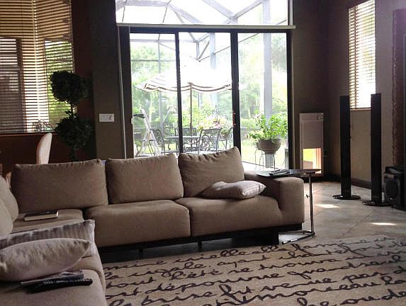 Beautifully upgraded home in San Messina on a premium lot with brick paver driveway. This home sits on almost 1/2 acre, circular driveway with 3 car garage. Diagonal laid tile through the main living areas. Coffered ceilings, widened arched doorways. The large master suite has a separate sitting room, 2 walk-in closets, large Roman tub, walk-in shower and lots of vanity counter top space and custom wood shutters. Bedroom 2 offers a private bathroom. The Kitchen offers a large walk in pantry, upgraded cabinetry and an upgraded seamless corner window at eating area along with stainless steel appliances. Formal dining area and open family room are excellent for entertaining and you can enjoy the sunsets on the large screened patio overlooking the expansive back yard. Electronic pet door.