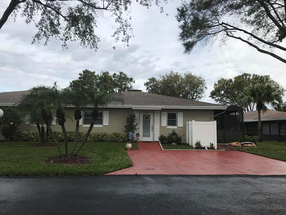 STUNNING 2/2 VILLA WITH DEN, UPDATED THROUGHOUT WT GLASS FRONT DOOR, TILE THROUGHOUT, WOOD CABINETRY, GRANITE COUNTERTOPS, BEAUTIFUL BATHS, LIGHTING & MORE. ENJOY THE EAT IN KITCHEN WT PASSTHRU TO DINING AREA, SCREENED PATIO OFF KITCHEN, OPEN LIVING/DINING ROOM, DEN FOR READING, TV OR JUST RELAXING. MASTER BEDROOM HAS 3 CLOSETS, ONE IS WALK-IN. NICE FLOORPLAN. THIS HOME IS BEAUTIFULLY DECORATED AND IMMACULATE AND LOCATED ON DEAD END STREET. ASSOCIATION COVERS MAINTENANCE CABLE, WATER, SEWER AND RECREATION FACILITY WITH HEATED POOL, SPA, FITNESS ROOM,LIBRARY,SHUFFLEBOARD, TENNIS & MORE.CONVENIENTLY LOCATED NEAR SHOPPING & RESTAURANTS, TURNPIKE AND I95. DON'T MISS THIS BEAUTIFUL PROPERTY.DINING RM CHANDELIER IS NOT INCLUDED.