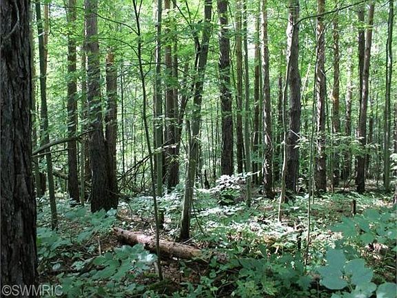 This almost 5 acres feels much larger because of all the topography and dense woods. Walking this property is a joy, the trails are wide and winding through mature timber and some thicker undergrowth. Enzian Road is classified as a natural scenic road and is protected from widening and paving. It winds through hillsides, meadows and wetlands, and it is county maintained. This property is not far from Grand Rapids or Kalamazoo, yet it's surrounded by forest land and lakes.