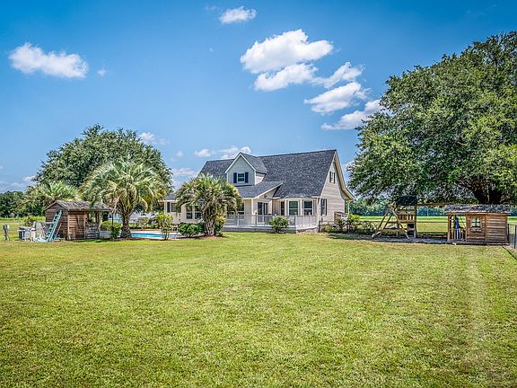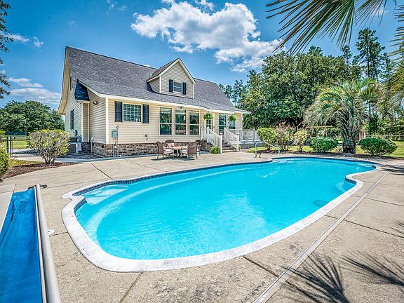 This charming lowcountry home is situated on 5.8 acres with a pond and dock, provides ample space for outdoor activities, gardening, etc. The spacious home offers 3004 Sq. Ft. of living space, 3 bedrooms, 2 full baths, 2 half baths, living room, den/family room, dining room, kitchen with a pantry, and laundry room. Enjoy lounging by the in-ground pool, grilling on the deck and watching the children play on the swing set that will convey. There is an out-building to store your play toys, lawn mower, tools, etc. Another bonus is the guest house that offers a living room, kitchen, two rooms for beds and laundry area, perfect for guest reside, or can be used as a rental for additional income. Please note the main house and guest house have a shared well.Start living your dream of enjoying a relaxing country lifestyle. Don't miss out, come take a look.