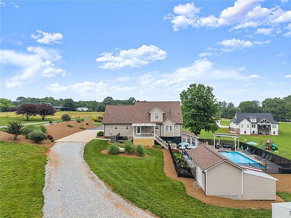 Luxury Living Meets Ultimate Entertaining – 4100+ Sq Ft Home with Finished Basement, Heated Saltwater Pool, Hot Tub & Event Barn Welcome to your dream home—an extraordinary property offering over 4,100 square feet of meticulously finished living space across three levels, thoughtfully designed for both everyday comfort and exceptional entertaining. On the main level, you’ll find a spacious and sun-drenched family room, along with a luxurious owner’s suite featuring an updated spa-style bathroom. Indulge in the elegant freestanding soaking tub, custom tile shower, and dual vanities. Upstairs includes three oversized bedrooms and a full bath—the largest currently used as a home office, perfect for remote work or creative space. The fully finished terrace level is a complete second living area with private entrance, ideal for multigenerational living, guests, or teens. It includes a full kitchen, second laundry room, large living space, bedroom, and full bath. Step out to the enclosed patio and relax in the six-person hot tub—yours to enjoy year-round. Step outside and prepare to be wowed. The heated saltwater pool is surrounded by an expansive concrete patio—an entertainer’s paradise. A poolside cabana adds convenience with a full bathroom and flexible space for changing, lounging, or storage. At the back of the property, the true showstopper awaits: a massive event barn designed to accommodate over 200 guests. Fully equipped with its own kitchen, dedicated men’s and women’s restrooms, and covered areas for outdoor seating or equipment, this venue is perfect for weddings, reunions, or unforgettable gatherings. This property offers an unbeatable combination of space, style, and resort-style amenities—all set in a private, scenic location. Homes like this are rare—don’t miss your opportunity to own one that truly has it all.