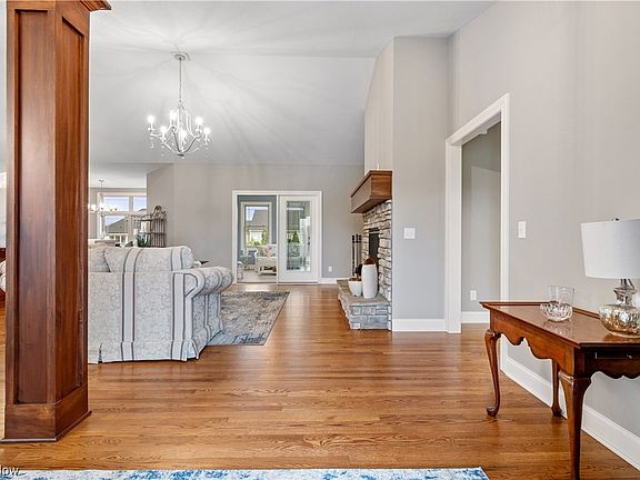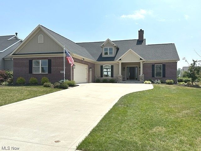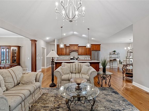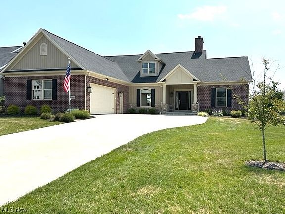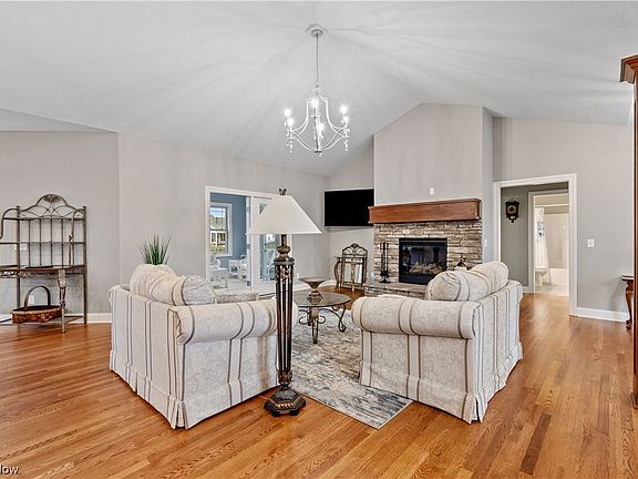 This home shows like brand new! This open, light and bright Ranch is complete with an unfinished walk-out lower level to design as you please. Rough plumbed for bath, door to LL patio and tall ceilings. Enjoy the view overlooking a tranquil stocked pond from the year round Sunroom. Wonderful custom cabinetry, quartz countertops in Kitchen with large eating bar / island open to the Great Room with stone fireplace w/ gas logs and features a cathedral ceiling. Spacious Dinette, formal Dining Room, and large Split bedroom combination for added privacy and convenient 1st floor Laundry Room, and Luxurious Master suite with tiled walk-in shower. Beautiful hardwood floors and quality is evident throughout! Located so conveniently to Canton, Akron or Cleveland.
