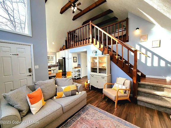 You are going to LOVE this UNIQUE PROFESSIONALLY DESIGNED and FULLY FURNISHED TURNKEY HOME. SO CUTE and MOVE IN READY. Great for investment or Pocono's getaway. Spend summer nights at the deck grilling with friends or cozy up by the FIREPLACE after day of skiing. This perfect house is located in amenities filled community wit, Lake, Pool, Tennis courts and so many different activities. Close to Rt 80, shopping, Mt. Airy Casino, minutes away from water parks: Kalahari Resort, Camelbeach, Aquatopia, Camelback Skiing resort, state parks, water sports, hiking, fishing, and more. Buyers to check STR requirements.