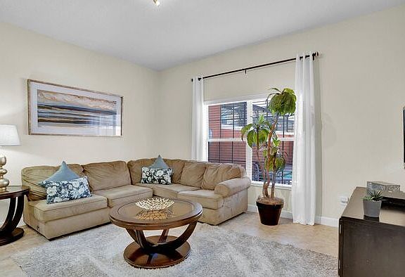 This property is a corporate rental. Please note that the monthly rental price for this property is dynamic and subject to seasonal adjustments. For an accurate quote, provide us with your intended move-in and move-out dates. Paradise Palms Resort Vacation Townhome - includes resort clubhouse amenity access! Our 4 bedroom, 3 bathroom, private vacation townhome is a great option for families wanting a home base to enjoy the best of all that Central Florida has to offer. * Paradise Palms Resort Private Townhome with Splash Pool, Sleeps up to 8 * 4 bedrooms / 3 bathrooms * Private Splash Pool - North Facing * Paradise Palms Resort Gated Community * 5 miles to Disney World property * Fully equipped Kitchen with seating for 6 at the dining table, and additional seating for 6 at the kitchen counter BEDROOMS (First Floor) - Bedroom 1 - Queen Bed / 32\" TV BEDROOMS (Second Floor) - Bedroom 2 - Two Twin Beds / 24\" TV - Bedroom 3 - One Queen Bed / 24\" TV - Master Suite 4 - One King Bed / Attached Bathroom / 50\" Smart TV A pack\'n\' play is available for use as well. Pool Charges and Information: * There is an additional optional charge of $20 per day plus tax to heat the pool. * Please note that our pools are serviced on a weekly basis. Resort Parking Rules: The resort allows a maximum of 3 cars per townhome. Each townhome has its own numbered parking spaces. You may park on your unit\'s numbered spots or any other unnumbered spots. Paradise Palms Resort Amenity Access Included with Rental: * Massive 5,000 sq. ft. pool * Luxurious hot tub * Exciting water slide * Paradise Palms tiki bar * 50-seat movie theater * State-of-the-art fitness center * Sundry shop * Game room * Internet lounge * Basketball courts * Sand volleyball courts * Lighted tennis courts Distances from Resort to Shopping & Attractions: * Walt Disney World - 5 miles * Universal Studios - 19 miles * SeaWorld - 15 miles * Orlando Airport - 27 miles * Atlantic Coast Beaches - 75+ miles * Gulf Coast Beaches - 92+ miles * Publix Supermarket - 2 miles * Walmart - 3 miles * Dining - 1 mile Why Choose this Rental? * Professionally managed to serve all your needs * Management company has over 26 years of experience hosting well over 200,000 families * Go straight to your rental with online email check-in * 24/7 on-call maintenance * No Resort Fees * Free On-Site Parking * Smoke-free and pet-free for your comfort * Towels and linens are provided * Complimentary WiFi * Additional Rental items Available (e.g., 3 & 4 burner BBQs, cribs, pack-n-plays, strollers, high chairs, etc.) Our Starter Welcome packet supplies: * 2 rolls toilet paper per bathroom * 2 round hotel-size bar soap per bathroom * 1 hotel-size shampoo/conditioner per full bathroom * 1 roll paper towel * 1 packet dishwasher detergent * 2 trash bags size-13-gallon * 1 small box laundry detergent (enough for one load) * Garbage can liners in each bedroom/bathroom small garbage cans * Any supplies beyond this are up to the guest to replenish, we do not restock these items. * No salt/pepper or cleaning supplies are stocked due to safety issues. This is an industry-standard practice. FOR GUESTS WHO BOOK 30 NIGHTS OR LONGER STAYS: (this does not apply if you are staying less than 30 nights) We will collect a $1,500 deposit. Balance is due 60 days prior to arrival If canceled 90 days or more before arrival, we keep with us $250.00. $1,250.00 will be refunded. If canceled between 61 and 89 days prior to arrival, we keep with us the $1,500.00 deposit. No cancellation or modification 60 days or less prior to arrival. Contact us to schedule a showing.