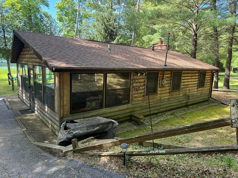 Discover serene lakeside living at this charming log-sided cabin on Elbow Lake. Nestled on nearly an acre of land with 80 feet of frontage on the 60-acre lake renowned for its excellent fishing, this retreat is a nature lover's paradise. The cabin features 2 cozy bedrooms, 1 bath, and a spacious open living area encompassing the kitchen, dining space, and a living room warmed by a fireplace with a wood stove insert—perfect for winter nights. Relax in the screened-in porch with stunning lake views or gather around the firepit with family and friends. With three sheds for all your lake toys and a second lot ideal for a garage, this property offers endless possibilities. Enjoy ORV trails, hunt on nearby Federal Land, fish the Little Manistee River, or hike the North Country Trail.