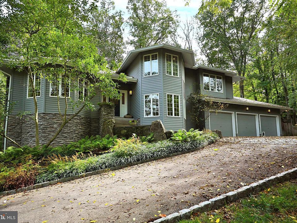 If you've been dreaming of living in the woods but don’t want to give up the creature comforts of a spectacular custom built contemporary home, you won’t want to miss this once in a lifetime opportunity. Straddling Lafayette Hill and Chestnut Hill with an expansive backyard that backs up to the trails of the Wissahickon, this stunning residence is a true gem that seamlessly blends modern elegance with classic charm. Drive up the long driveway and park inside or outside of the 3-car garage. The moment you step onto the beautifully landscaped grounds, you’ll feel a sense of peace and tranquility. Sitting on 3/4 of an acre of wooded land, a myriad of patios and balconies offer incredible views from nearly every room in the home. With over 3,300 square feet on the main and upper levels and an additional approximately 1,100+ square feet of finished space on the walkout lower level, the inviting layout is perfect for both entertaining and for everyday living. Enter into a foyer that flows into the living room and dining room, all with dramatic cathedral ceilings. The living room has large windows that flood the space with natural light and a wood-burning fireplace. Down a short set of stairs, the dining room opens onto a deck to let in the breeze. Next, the gourmet eat-in kitchen boasts stainless steel appliances, granite countertops, and an expansive island and a small deck. The kitchen overlooks the lovely family room with wood burning fireplace and stone floor to ceiling mantelpiece, the perfect set-up for cooking in the kitchen while the family hangs out together. This room opens directly onto the patio and expansive backyard for easy entertaining and dining al fresco. The first floor also has a gorgeous office set far enough away from the main action of the home for quiet and privacy. A full bathroom and the laundry room complete this floor. As if this were not already more than you could ask for in the way of living space, the spacious finished walkout basement with brand new carpet comes complete with a huge family/media room/kids playroom with full daylight from sliders to the outside. This floor has a totally separate bedroom and full bath, making it an ideal in-law or au pair suite. It also has an additional space that can be used as a home gym or extra storage. The upper floor is home to a serene primary suite, complete with two walk-in closets and spa-like ensuite bathroom with rainfall shower, and a private deck overlooking the backyard and the Wissahickon. Three additional well-appointed bedrooms and a full bath complete this floor. The lush landscaping provides a tranquil setting, perfect for relaxation or play and exploration. Situated in a highly sought-after neighborhood, this home offers the best of both worlds: a peaceful residential woodsy environment with easy access to top-rated schools and vibrant shopping and dining options. Enjoy the perks of a suburban address including lower income taxes and highly rated public schools, while enjoying the best of Chestnut Hill and the Wissahickon and an easy commute into both the city and the suburbs. Don’t miss the opportunity to make this exceptional property your own! Schedule your private showing today and experience the unique perfect blend of luxury, comfort, and style in the most peaceful of settings.