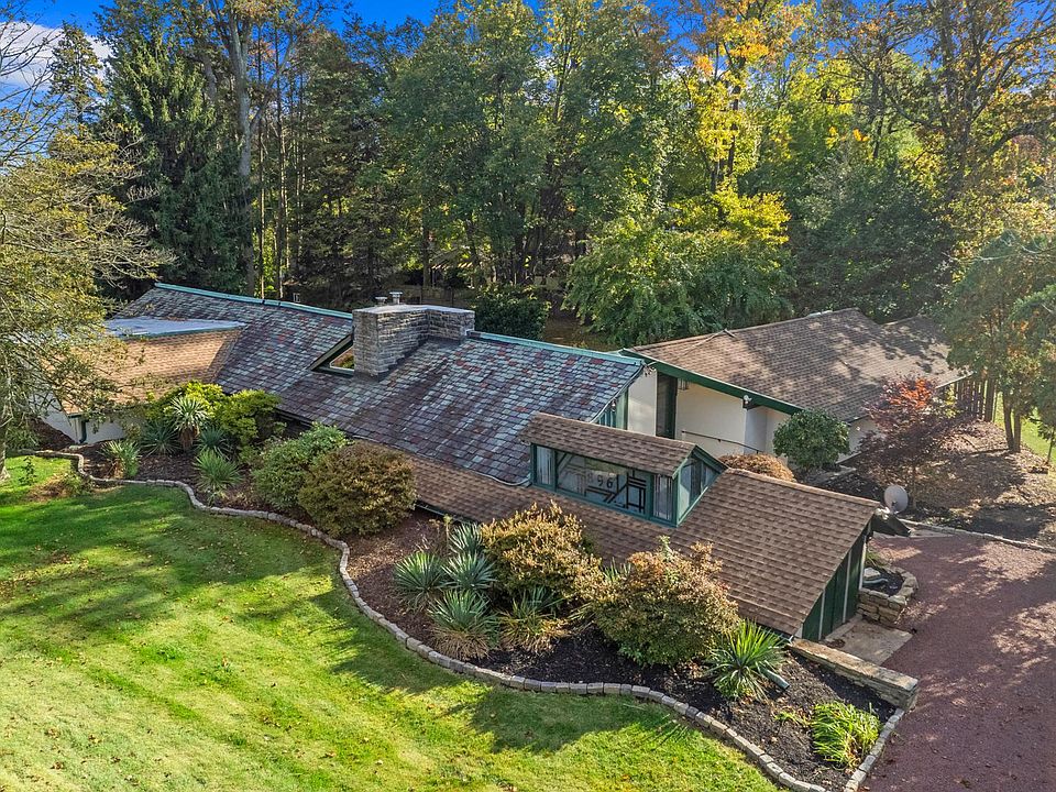 Custom 1-story ranch home inspired from the Usonian design of Frank Lloyd Wright that is situated on a secluded lot In Prestigious Glen Ashton Farms. Arrive and you will immediately fall in love with the professionally landscaped grounds and several outdoor spaces designed for different moods set around a focal point of the Carlton organic-shaped concrete pool & patio. Enter through a grand foyer to find a dramatic, sophisticated floor plan designed around an abundance of floor to ceiling windows that provides an abundance of natural light and stunning, year rounded wooded views. There is an addition that hosts the spacious primary suite with vaulted ceilings, an abundance of closets, French Doors leading to the pool/deck and leads to the primary bathroom with marble floors, skylights with retractable shades, dressing area with sitting & storage area, sunken jetted tub, stall shower & vessel sink. The main living area offers an open concept with a breathtaking wall of windows and hosts a large dining & living area with wood burning stove, kitchen with an abundance of cabinets & counter space, stainless steel appliances & breakfast bar overlooking the spacious family room and access to the private side patio. The remainder of the main level has 2 additional bedrooms, updated hall bathroom with radiant heated tile floors, stall shower & new vanity, large laundry room with washer & dryer that are included and tons of storage. There is a detached garage/shed equipped with a side entrance, windows, electric, heat and air conditioner that would make for a great artist studio, home office, gym, man cave, awesome garage for a car enthusiast or a variety of possibilities.. The rear yard is an entertainers dream with large patio with professionally landscaping overlooking the inground pool, fire pit area and large yard. Additional features are mini-split air conditioners, 2 additional sheds & storage areas, updated 200-amp electric service, new heater, replacement windows throughout and the list could go on. Conveniently located in close proximity to I-95, & Turnpike and public transportation. Truly a unique property with a ton of character that will not disappoint.