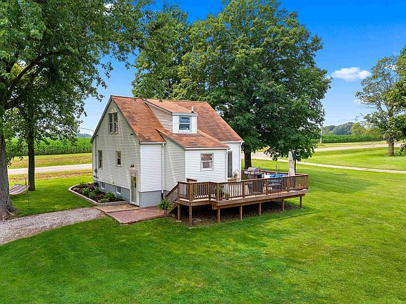 Such an amazing opportunity to own this adorable move in ready 3 BR 2 BA home on 2.63 acres with 2 outbuildings! Plenty of land for pasture for animals, woods, maybe you want a large garden, raise chickens, great space for a shooting range, you decide!! 24 x 32 outbuilding w/concrete floor, taller garage door, great place for a work shop, storage, or maybe you want to add horse stalls! Stepping inside this charming & updated home you will love the neutral paint colors & updated lighting throughout, spacious kitchen w/breakfast bar, all black appliances included, tiled backsplash, wonderful pantry storage for an added bonus, original wood flrs, & great dining area! Updated main floor BA w/tile floor, toilet, faucets, linen closet. Sliding door has been replaced to spacious deck built in '18 to extend your living space & enjoy the beautiful summer weather. Primary BR on main & 2 BR's up both w/vaulted ceilings, dormers, each rm has 3 double hung windows w/blinds for abundance of natural light, ceiling fan/light combo, plus 2nd updated bath! Such a clean basement w/new windows, perfect for more storage, or add a work bench, plus Laundry area! Roof '13, Septic 2001, Radon system '14, water softener '15, newer carpet in all 3 BR's, some replacement windows, plus home warranty included! Such pride of ownership in this property and it is ready for you to move-in and enjoy! Opportunities for some acreage in the country do not come along very often so call today!
