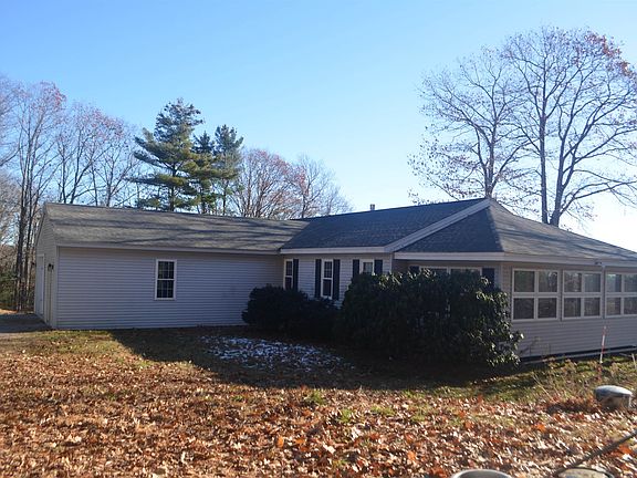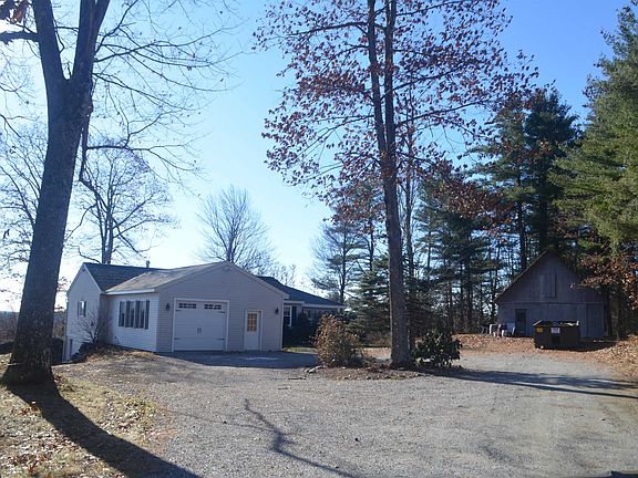 Cute as a button Ranch style home with views of local hills. Country setting but close to downtown Henniker, Pat's Peak Ski Area, hiking, ATV and snow mobile trails. One level living includes an attached garage with parking for one vehicle and ramp for easy wheelchair access. Enter the home into a combination mudroom/laundry with easy care tile flooring. The kitchen has lovely painted cabinets and the dining/living room has oak flooring. Access the huge deck, which faces the view. Keep the home cool and shaded with a large exterior awning. Three bedrooms are off the hall as well as a full bath. The primary bedroom has low pile carpet and a private bath with a large double sink vanity, closet and step in shower with seat. There is a spacious, all season room at the end of the hall with many windows and slider access to the deck. A large barn close to the home offers additional parking and storage. The home has all new windows in 2023, a new roof in 2021 and central A/C. The walk out basement has a full door and a double door making it easily accessible. There is a large field which is a great space for large garden, crops, orchard and/or animals. Potential horse property. A portion of the land is in current use and any future current use assessment penalty will be paid by the buyer. Showings to begin Friday, December 8th by appointment.